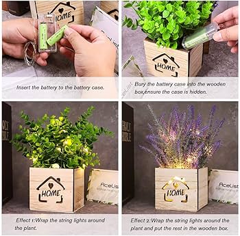 Acelist Pack Of 2 Artificial Plant With Led Lights In Wooden Box 11 X 9 X 26 Cm Artificial Plant Artificial Plants In Pot For Home Office Desk Kitchen Decoration Valentine S Day Mother S