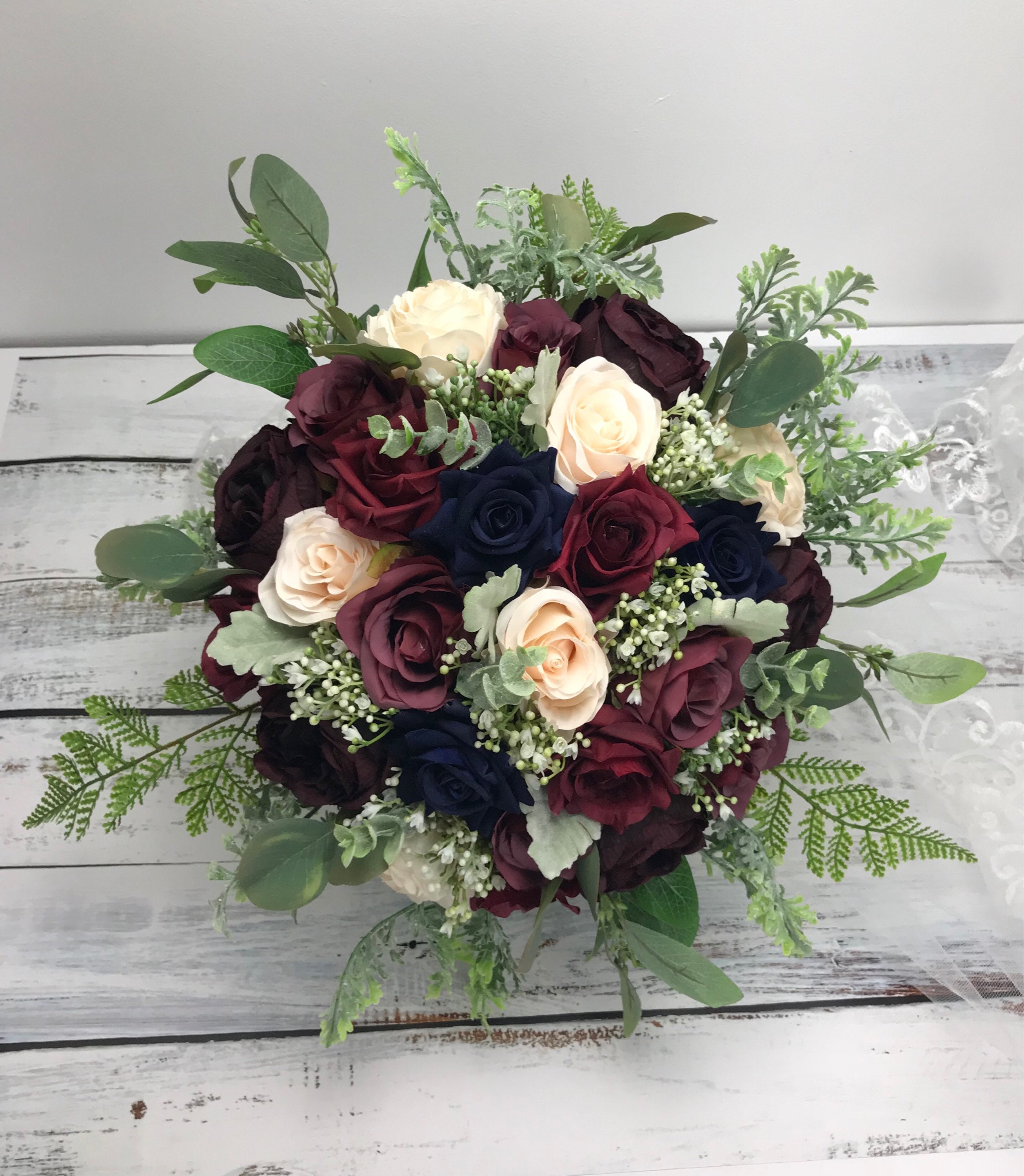 Navy Burgundy Bouquet Wedding Bouquet Wine Ivory Dark Blue Bridal Bridesmaids Bouquet Winter Weddingdusty Miller Eucalyptus Rose Etsy